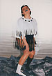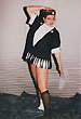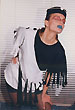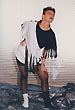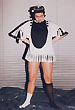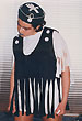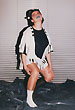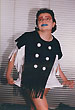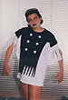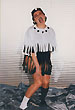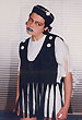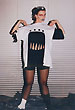 Собственно одежная часть костюмов не шилась - каждая позиция коллекции была комбинацией из 2-х футболок, черной и белой, с разрезами на них и пуговицами. Резать футболки мне помогала Зоя Альмухамедова. Обуви не было - на ноги одевались в разных сочетаниях черные и белые носки и гольфы.