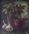 КРАСНАЯ ЧАШКА И ЧЕСНОК 1986 г. 58 Х 40 см оргалит, масло |