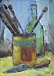 КИСТИ И МАСТИХИН 1987 г. 35 Х 26 см картон, масло